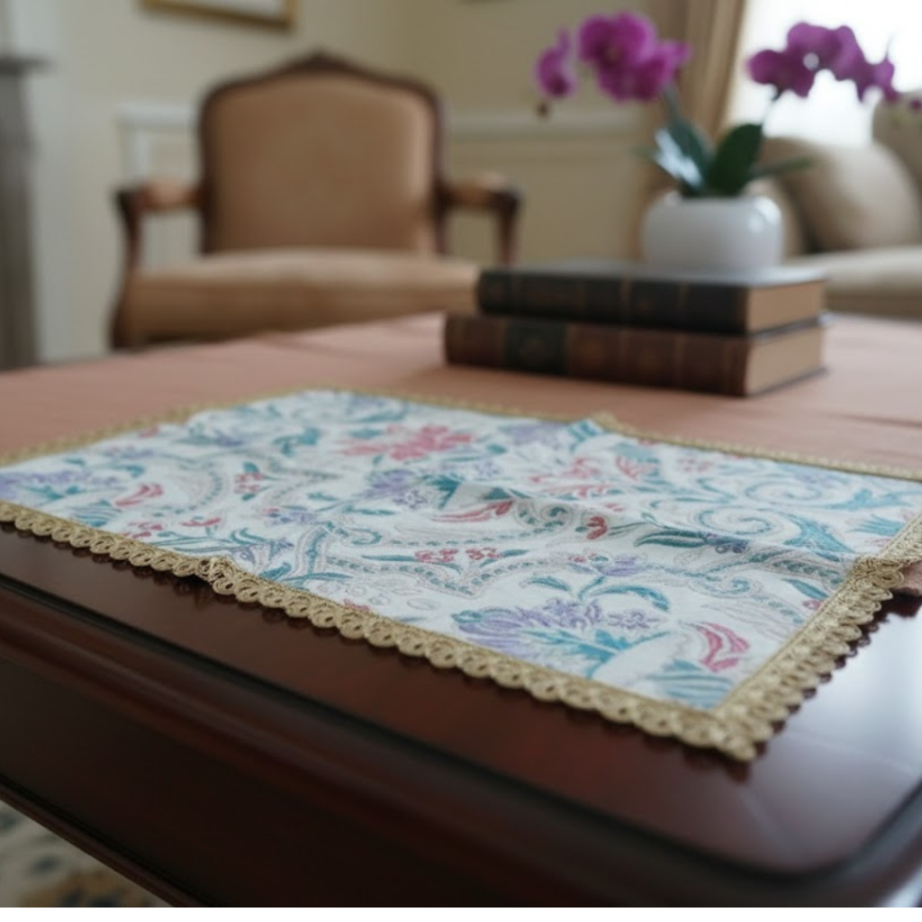 Carpeta Rectangular Blanca Con Encaje Grueso A Sus Orillas 2