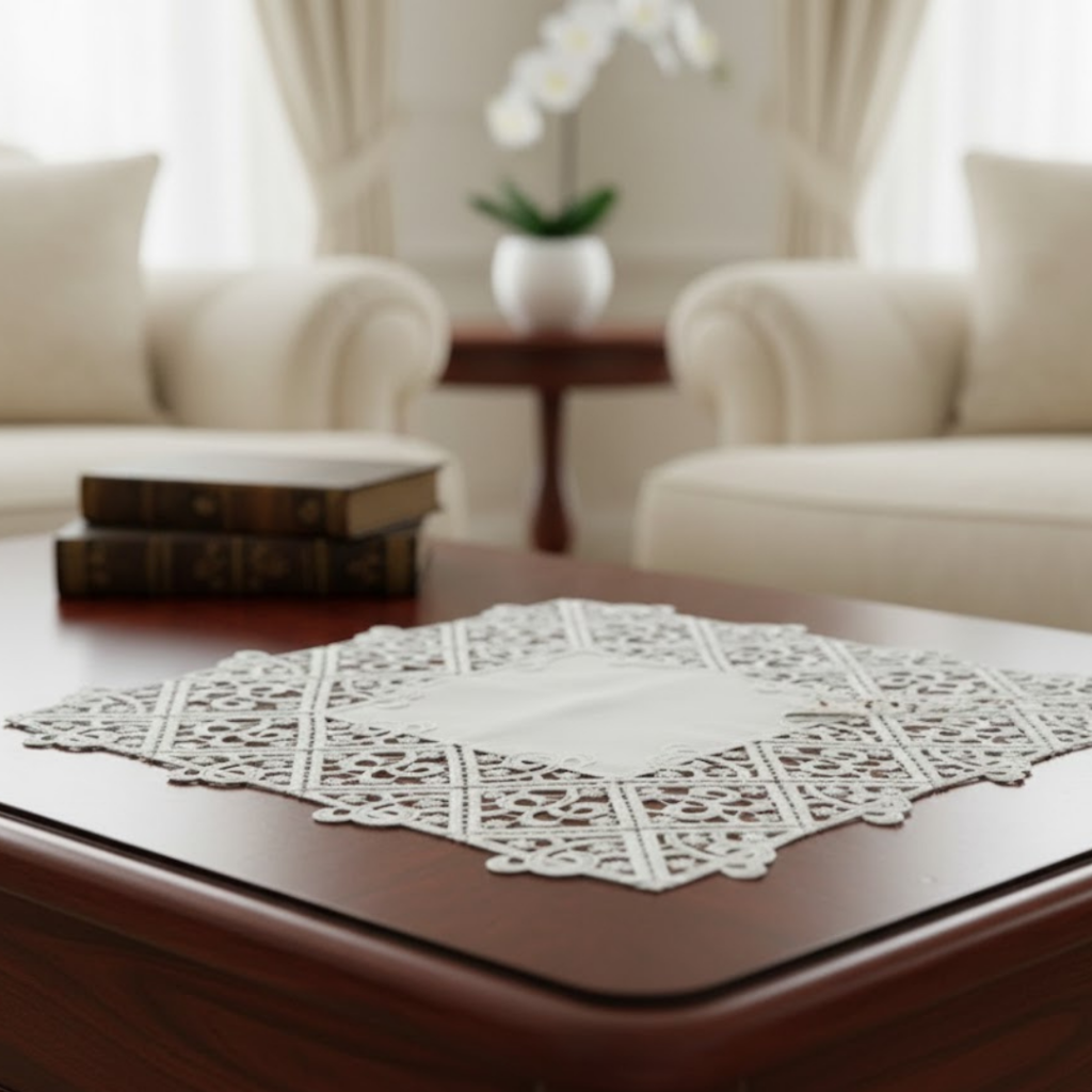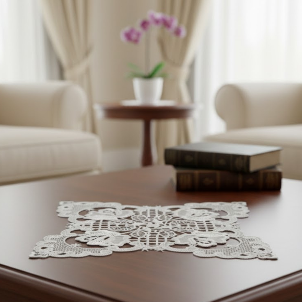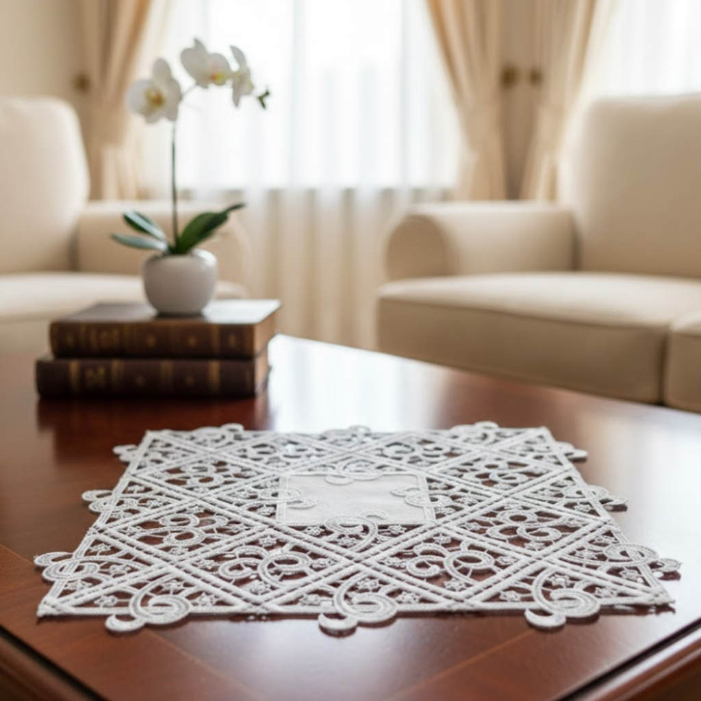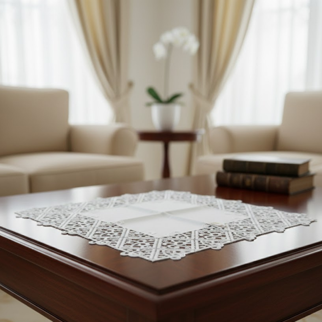 Carpeta Cuadrada Blanca Con Encaje En Orillas 43X43Cm