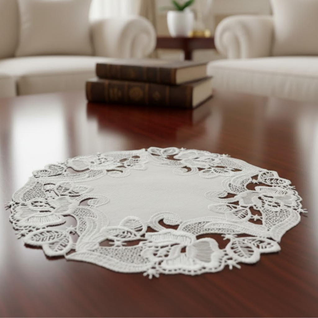 Carpeta Circular Blanca Con Encaje ⌀30Cm – Plauener Spitze