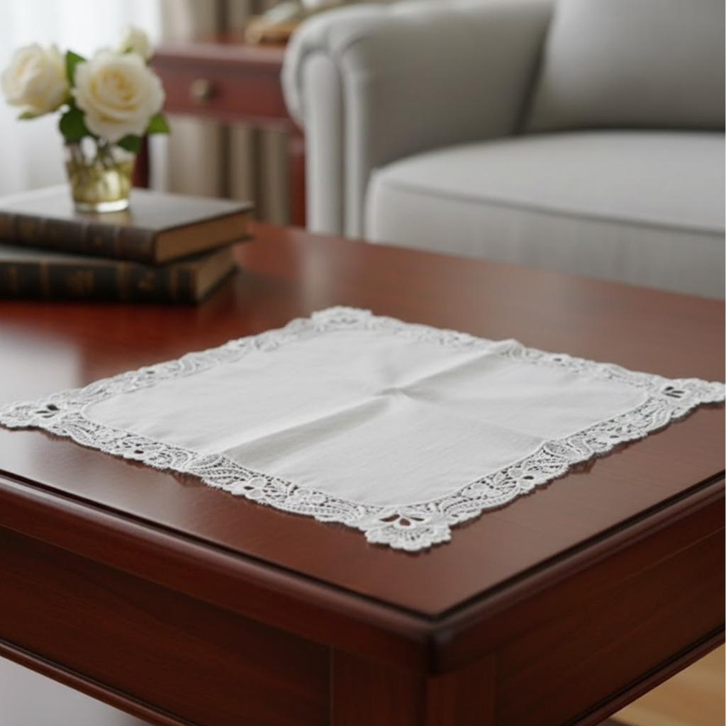 Pañuelo De Tela Blanca Con Encaje Con Encaje 17X17Cm
