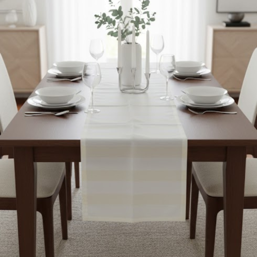 Camino De Mesa Blanco De Rayas Y Gasa 40X150Cm – Laura S