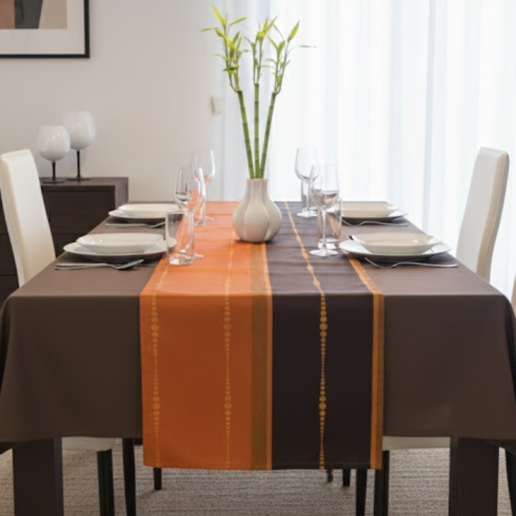 Camino De Mesa Naranja Con Café Bordado 45X145Cm – Kempf