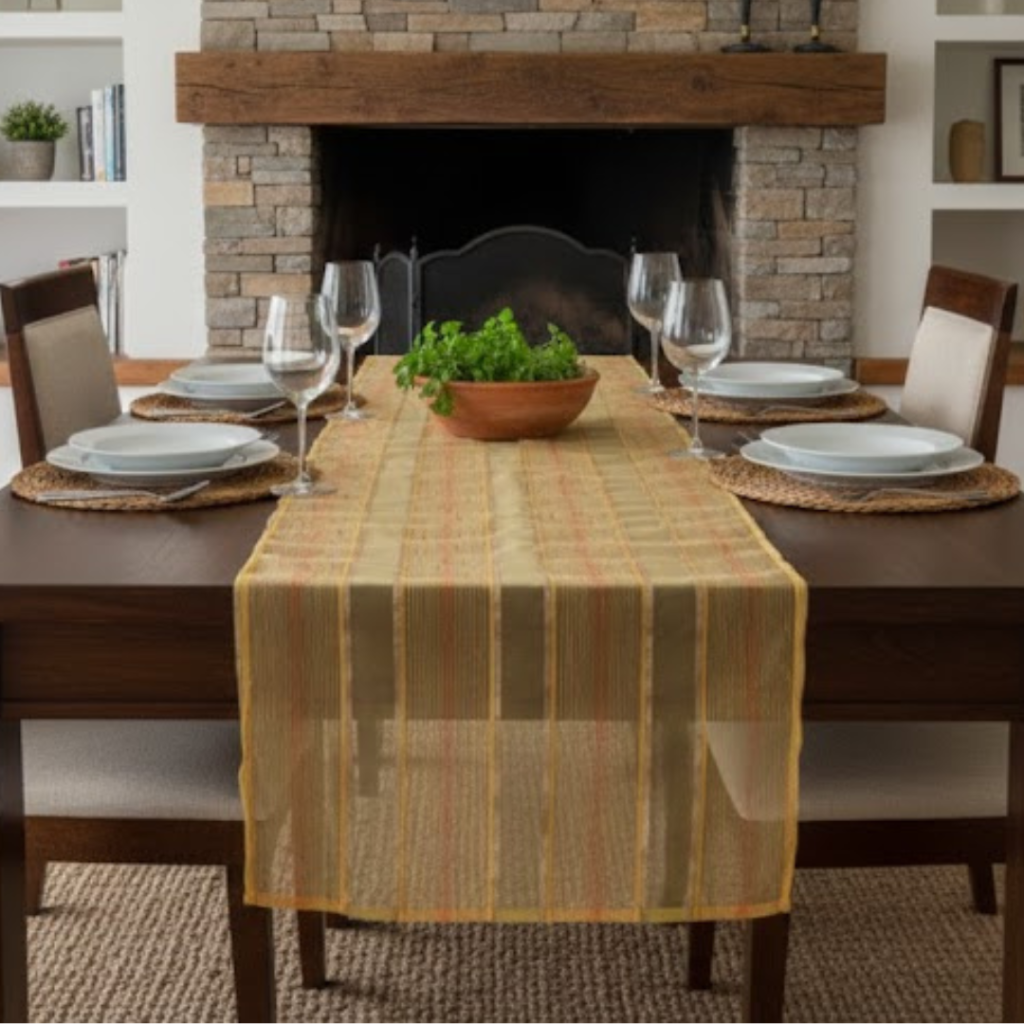 Camino De Mesa De Rayas Amarillo Y Gasa 50X150Cm – Laura S