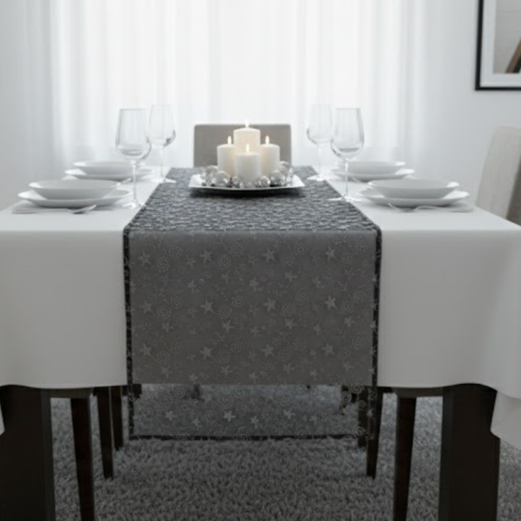 Camino De Mesa Negro Con Brillntina Plateada 50X150Cm
