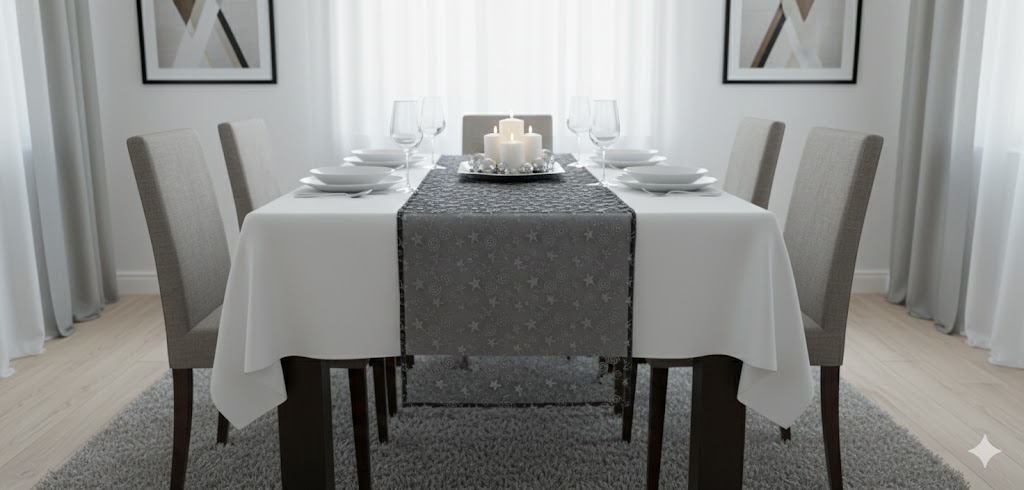 Camino De Mesa Negro Con Brillntina Plateada 50X150Cm