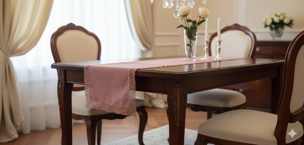 Camino De Mesa Palo De Rosa De Lino Con Encaje 40X120Cm – Bielefelder