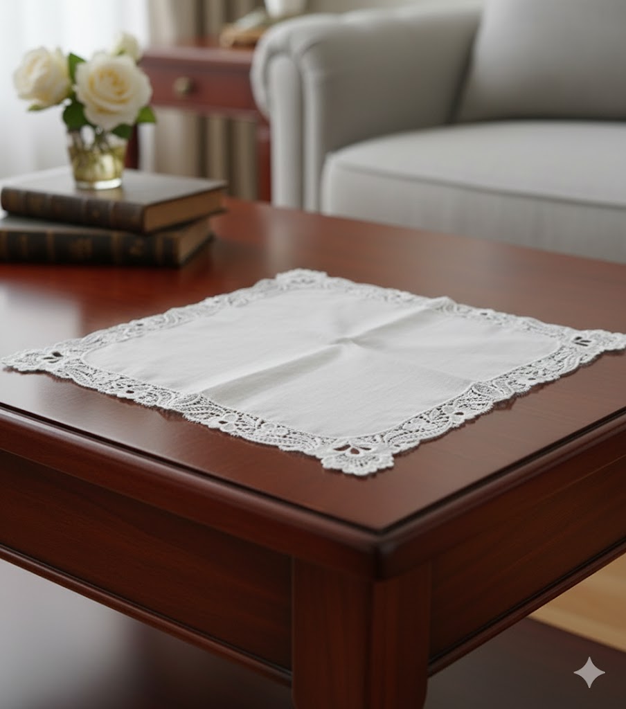 Pañuelo De Tela Blanca Con Encaje Con Encaje 17X17Cm